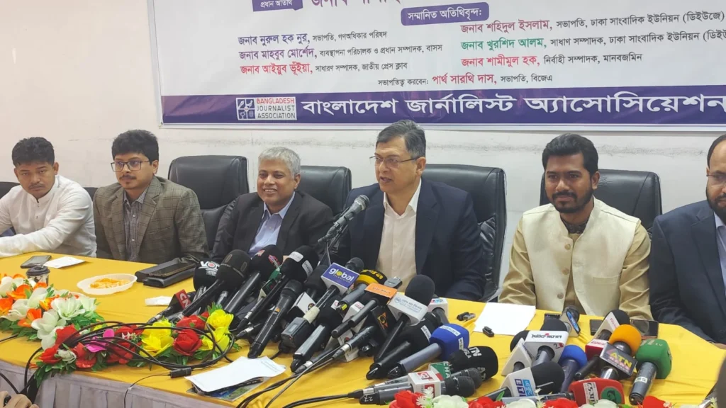 বুধবার রাজধানীর জাতীয় প্রেসক্লাবে বাংলাদেশ জার্নালিস্ট অ্যাসোসিয়েশন আয়োজিত জুলাই ‘গণঅভ্যুত্থান: গণমাধ্যম ও সাংবাদিকতা’ শীর্ষক আলোচনা সভায় তিনি এই দাবি জানান।