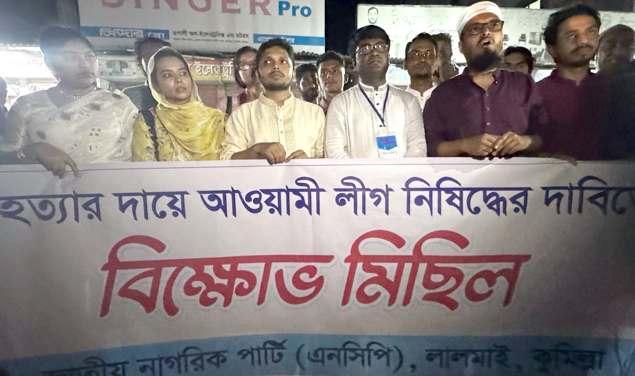 সমতট ডেস্ক: গণহত্যার দায়ে আওয়ামী লীগের বিচার, নিবন্ধন বাতিল এবং রাজনৈতিক ও সাংগঠনিক কার্যক্রম নিষিদ্ধের দাবিতে কুমিল্লার লালমাইয়ে বিক্ষোভ মিছিল করেছে জাতীয় নাগরিক পার্টি (এনসিপি)।