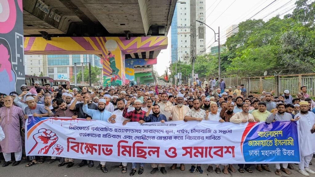 তিনি শনিবার বিকালে রাজধানীতে ঢাকা মহানগরী উত্তর জামায়াত আয়োজিত মিটফোর্ডে নির্মমভাবে ব্যবসায়ীকে হত্যার প্রতিবাদ ও অপরাধীদের দৃষ্টান্তমূলক শাস্তির দাবিতে এক বিক্ষোভ পরবর্তী সমাবেশে এসব কথা বলেন। বিক্ষোভ মিছিল তেজগাঁও সাতরাস্তা থেকে শুরু হয়ে নগরীর বিভিন্ন গুরুত্বপূর্ণ সড়ক প্রদক্ষিণ করে মগবাজারে গিয়ে সংক্ষিপ্ত সমাবেশের মাধ্যমে শেষ হয়।