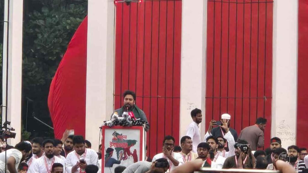 রোববার (৩ আগস্ট) বিকেলে কেন্দ্রীয় শহীদ মিনারে এনসিপির সামবেশে এই ঘোষণা দেন তিনি।