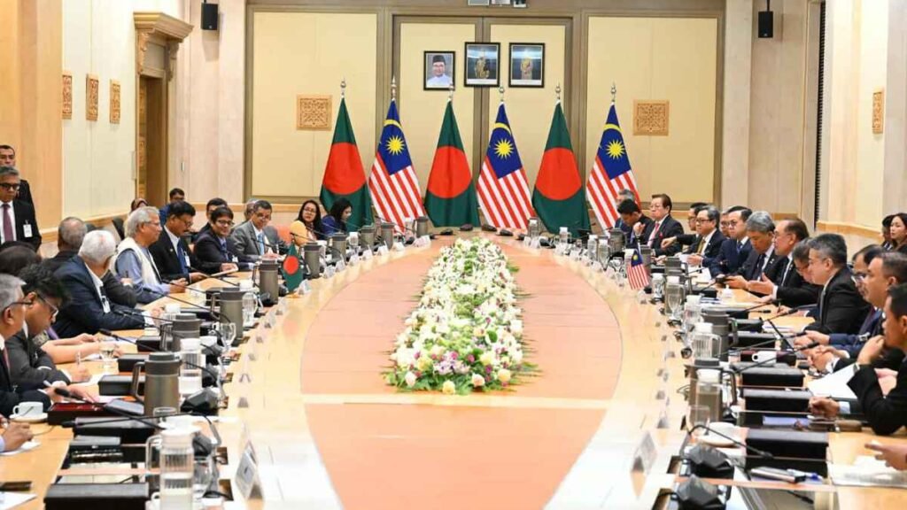 এর আগে, সকাল ১০টায় পুত্রাযায়ায় মালয়েশিয়ার প্রশাসনিক ভবনে আনুষ্ঠানিক বৈঠকে বসেন ড. মুহাম্মদ ইউনূস ও আনোয়ার ইব্রাহীম। বৈঠকে দুই দেশের মধ্যে দ্বিপাক্ষিক সম্পর্ক জোরদারে বেশ কিছু গুরুত্বপূর্ণ বিষয়ে আলোচনা হয়।