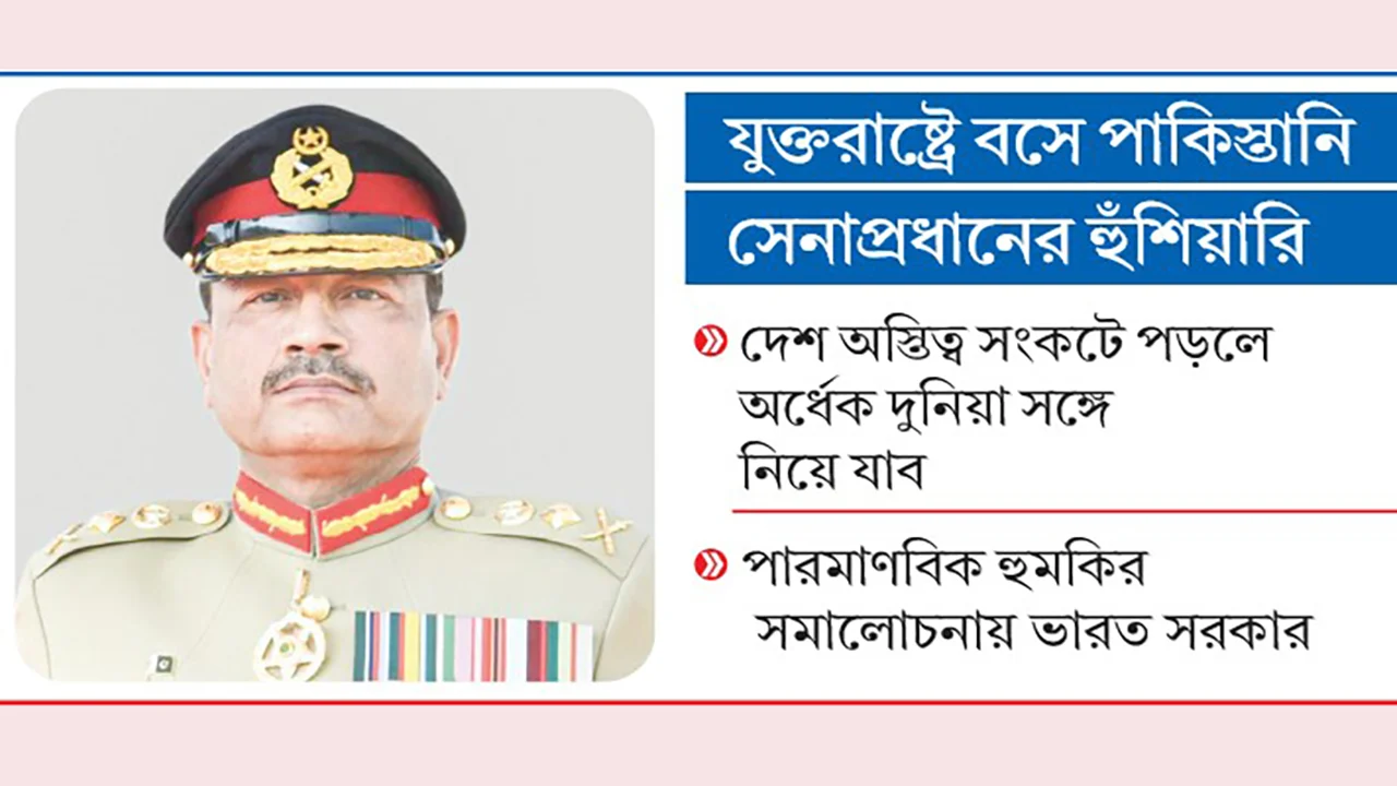 পাক সেনাপ্রধান বলেন, ভারতের সঙ্গে ভবিষ্যতে কোনো যুদ্ধে তার দেশ যদি অস্তিত্বের সংকটে পড়ে, তাহলে তারা অর্ধেক দুনিয়া সঙ্গে নিয়ে যাবেন।