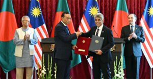 সমতট ডেস্ক : বাংলাদেশ ও মালয়েশিয়া পাঁচটি সমঝোতা স্মারক এবং তিনটি নোট বিনিময় সই করেছে। মঙ্গলবার (১২ আগস্ট) পুত্রজায়ায় প্রধান উপদেষ্টা অধ্যাপক ড. মুহাম্মদ ইউনূসের তিনদিনের মালয়েশিয়া সফরের প্রথম দিন এ চুক্তি সই হয়। এসময় উপস্থিত ছিলেন মালয়েশিয়ার প্রধানমন্ত্রী আনোয়ার ইব্রাহিম ও ড. ইউনূস।