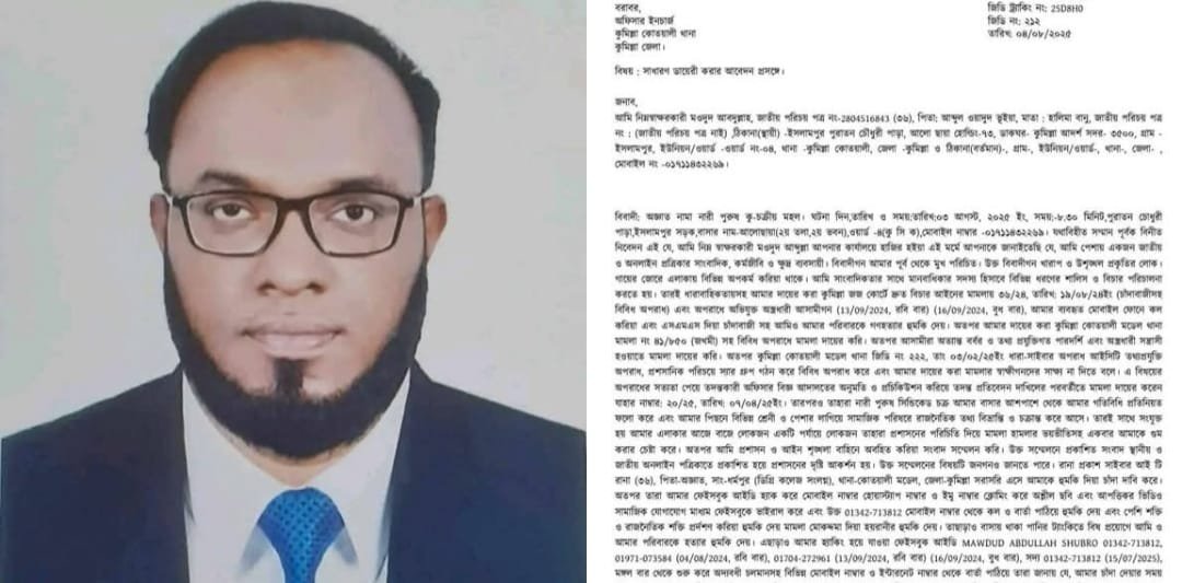 নিজের ও পরিবারের নিরাপত্তার জন্য তিনি কুমিল্লা কোতোয়ালি মডেল থানায় সাধারণ ডায়েরি (জিডি নং-২১২, তারিখ ৪ আগস্ট ২০২৫, ট্র্যাকিং নং 25D8H0) করেছেন।