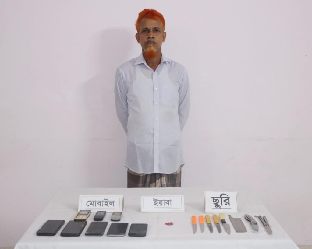 ১৯ আগস্ট রাত আনুমানিক সাড়ে ১১টার দিকে প্রাপ্ত গোয়েন্দা তথ্যের ভিত্তিতে এ অভিযান পরিচালিত হয়। এসময় তার কাছ থেকে ২০ পিস ইয়াবা ট্যাবলেট, ৮টি ছুরি, ৫টি অ্যান্ড্রয়েড মোবাইল ফোন এবং ৩টি বাটন মোবাইল ফোন উদ্ধার করা হয়।