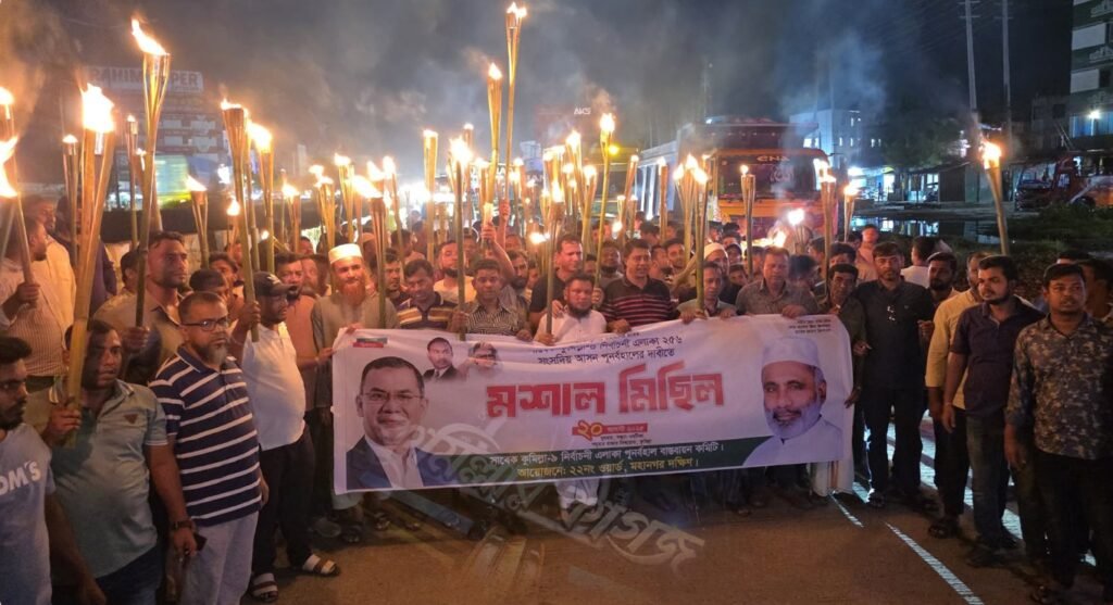 সমতট ডেস্ক : সাবেক কুমিল্লা-৯ (সদর দক্ষিণ, লালমাই, নাঙ্গলকোট) আসন পুনর্ববহালের দাবিতে ঢাকা-চট্টগ্রাম মহাসড়কের পদুয়ার বাজারে মশাল মিছিল করেছে বিএনপি। কুমিল্লা সিটি কর্পোরেশনের ২২ নং ওয়ার্ড বিএনপির উদ্যোগে মশাল মিছিলে অংশ নেয় দক্ষিণ জেলা বিএনপির ছাত্রদল, যুবদল, স্বেচ্ছাসেবক দল সহ বিএনপি’র স্থানীয় শীর্ষনেতৃবৃন্দ। মশাল মিছিল শেষে ঢাকা-চট্টগ্রাম মহাসড়কের পার্শ্ববর্তী এলাকায় সংক্ষিপ্ত সমাবেশে বক্তব্য রাখেন সাবেক সংসদ সদস্য ও বিএনপি চেয়ারপার্সনের উপদেষ্টা মনিরুল হক চৌধুরী সমর্থিত নেতৃবৃন্দ। ।