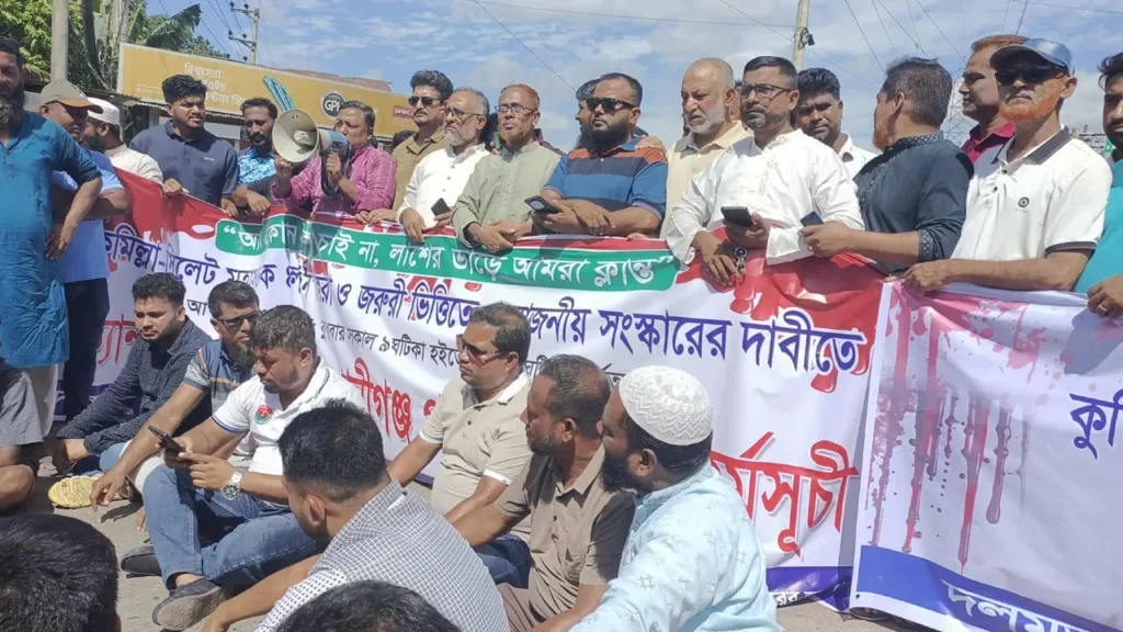 সমতট ডেস্ক : কুমিল্লা-সিলেট মহাসড়ক চার লেনে উন্নীতকরণ ও দ্রুত সংস্কারের দাবিতে বুড়িচং উপজেলার ময়নামতি থেকে কংশনগর পর্যন্ত ৯ স্থানে সড়ক অবরোধ করে বিক্ষোভ করেছেন স্থানীয় বাসিন্দারা। বুধবার (২৭ আগস্ট) সকাল ১০টা থেকে এক ঘণ্টাব্যাপী এ বিক্ষোভ কর্মসূচি পালন করা হয়।