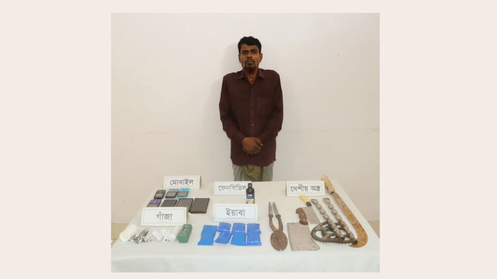 জানা গেছে, অভিযানের সময় হানিফ মিয়ার কাছ থেকে ১ হাজার ৮৯৭ পিস ইয়াবা, ২০ গ্রাম গাঁজা, ১ বোতল ফেনসিডিল, দুটি চাইনিজ কুড়াল, একটি রামদা, দুটি চাপাতি ও একটি সিজার জব্দ করা হয়।