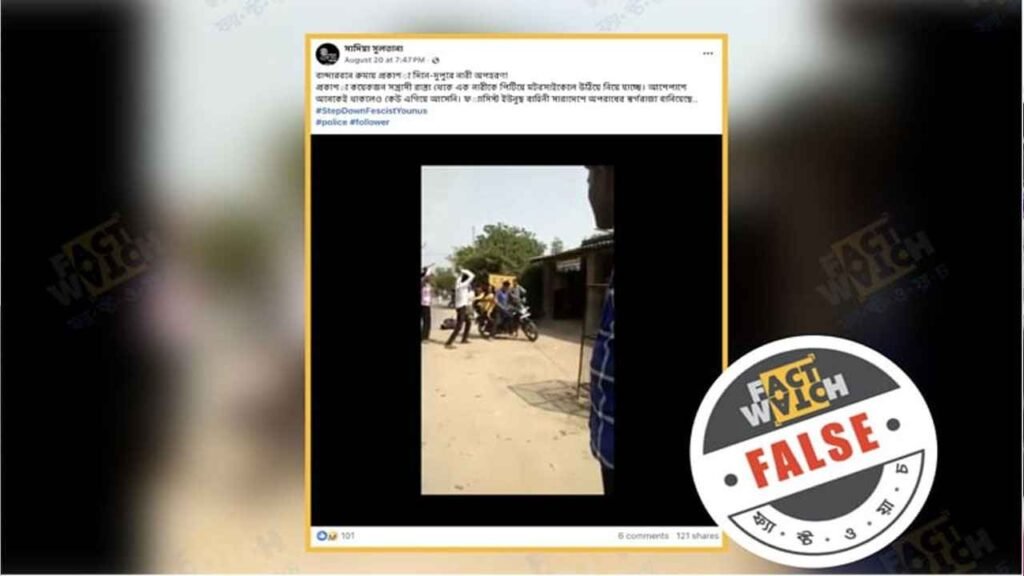 ফ্যাক্টওয়াচ জানায়, প্রকাশ্যে নারী অপহরণের একটি ভিডিওকে বান্দরবানের রুমা উপজেলার ঘটনা বলে ফেসবুকে ছড়ানো হয়। ভিডিওটি দিয়ে বর্তমান অন্তর্বর্তী সরকারের আইনশৃঙ্খলা পরিস্থিতিকে প্রশ্নবিদ্ধ করার চেষ্টা করা হয়। কিন্তু অনুসন্ধানে দেখা যায়, ভিডিওটি আসলে ভারতের উত্তরপ্রদেশের একটি ঘটনার।