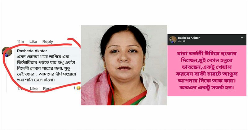 ভিক্টোরিয়া কলেজের এক শিক্ষার্থী বলেন- “পর্দা ইসলামের বিধান। আমরা স্বেচ্ছায় বোরকা পড়ি ও ইসলামী জীবন বিধান মেনে চলি। আওয়ামী লীগ নেত্রী রাশেদা আক্তার শুধু বোরকা নিয়েই অপমান করেননি, বরং নারীদের মর্যাদা ও প্রবাসীদের অবদানকে হেয় করেছেন। আমরা তার দ্রুত গ্রেপ্তার ও সর্বোচ্চ শাস্তি দাবি করছি।”
