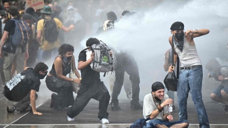 স্থানীয় সময় বুধবার বিক্ষোভ শুরুর ঘণ্টাখানেকের মধ্যে পুলিশ অন্তত ২০০ জনকে আটক করে বলে জানিয়েছে দেশটির গণমাধ্যম লো মঁদ। তবে রয়টার্স জানিয়েছে, এ সংখ্যা অন্তত ৩০০ জন।