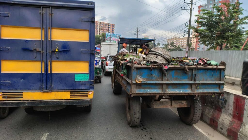 ট্রাক্টরের ঝাঁকুনিতে ১৫-২০ শতাংশ ময়লা রাস্তায় ঝরে পড়া, যা নগরীর পরিবেশকে আরও নোংরা করছে