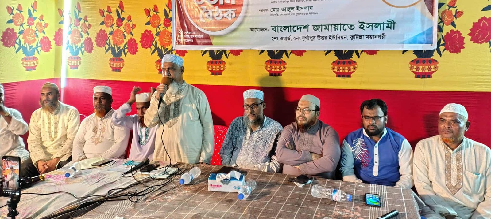 প্রধান অতিথির বক্তব্যে কাজী দ্বীন মোহাম্মদ বলেন, “আগামী জাতীয় নির্বাচনে আমরা আল্লাহর জমিনে আল্লাহর আইন বাস্তবায়নের লক্ষ্যে দাঁড়িপাল্লা মার্কায় ঐক্যবদ্ধভাবে কাজ করব, আমরা সুদ,দুর্নীতি ও চাঁদাবাজী বন্ধ করতে চাই।