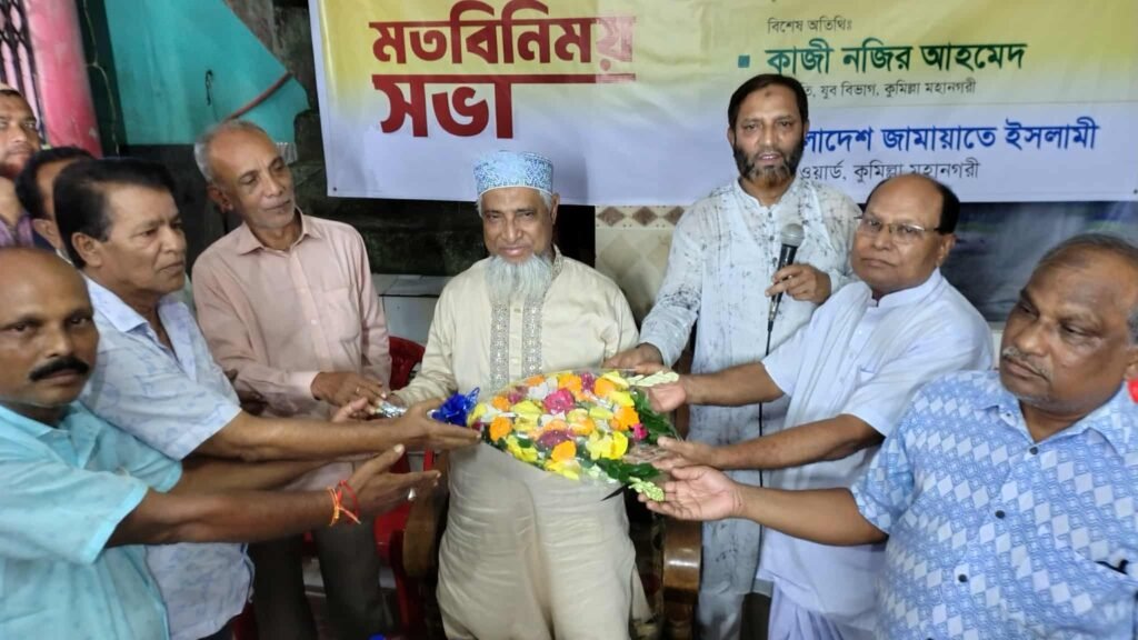জাতীয় নির্বাচনকে সামনে রেখে কুমিল্লা-৬ আসনের জামায়াত মনোনীত সংসদ সদস্য প্রার্থী, কুমিল্লা মহানগরীর আমীর ও কেন্দ্রীয় কর্মপরিষদ সদস্য কাজী দ্বীন মোহাম্মদ ধারাবাহিকভাবে গণসংযোগ ও উঠান বৈঠক চালিয়ে যাচ্ছেন। এরই অংশ হিসেবে আগামী দুর্গাপূজাকে ঘিরে হিন্দু সম্প্রদায়ের সাথে মতবিনিময় ও কৌশল বিনিময় সভা অনুষ্ঠিত হয় শনিবার (২০ সেপ্টেম্বর) সন্ধ্যা ৮টায় কুমিল্লা নগরীর কালিয়াজুরি শীলবাড়ি কল্পতরু বিশ্বনাথ শিবমন্দিরের সামনে।