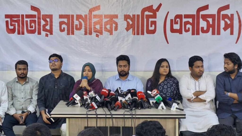 সংবাদ সম্মেলনে এনসিপি নেত্রী নাহিদা সারোয়ার নিভা, তাজনূভা জাবীন, সালেহ উদ্দিন সিফাত, আল আমিন, সাইফ মোস্তাফিজসহ অন্যরা উপস্থিত ছিলেন।