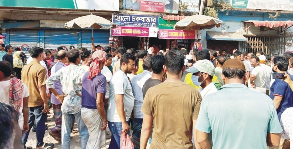 ব্যবসায়ীরা জানান, চকবাজারের প্রবেশমুখে রুবেল মিয়া কয়েকটি অস্থায়ী দোকান বসিয়ে দীর্ঘদিন ধরে চাঁদা আদায় করে আসছিলেন। এতে বাজারের পরিবেশ নষ্ট ও আশপাশের ব্যবসায়ীরা ক্ষতিগ্রস্ত হচ্ছিলেন। সম্প্রতি তাঁকে দোকান সরাতে বললে তিনি ক্ষুব্ধ হয়ে কয়েকজনকে হুমকি দেন। এর প্রতিবাদেই ব্যবসায়ীরা রাস্তায় নেমে আসেন।