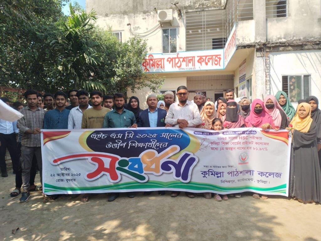 উল্লেখ্য, ২০২৫ সালের এইচএসসি পরীক্ষার ফলাফলে কুমিল্লা মহানগরের বেসরকারি কলেজগুলোর মধ্যে সর্বোচ্চ পাশের হার অর্জন করেছে কুমিল্লা পাঠশালা কলেজ। প্রতিষ্ঠানটির ৬১ জন পরীক্ষার্থীর মধ্যে ৫০ জন উত্তীর্ণ হয়ে পাশের হার দাঁড়িয়েছে ৮১.৯৭ শতাংশ, যা এবারের ফলাফলে শীর্ষস্থান। অনলাইনে প্রাপ্ত তথ্যানুযায়ী, দ্বিতীয় অবস্থানে রয়েছে কুমিল্লা ক্যামব্রিয়ান কলেজ (৭৭.২৭%) এবং তৃতীয় স্থানে ইবনে তাইমিয়া স্কুল অ্যান্ড কলেজ (৭৩.১৩%)।