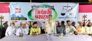 বিকাল ৪টা ৩০ মিনিট থেকে শুরু হওয়া ওই কর্মসূচিতে প্রধান বক্তা হিসেবে বক্তব্য দেন উপজেলা চেয়ারম্যান প্রার্থী অধ্যাপক এ. কে. এম. এমদাদুল হক মামুন। তিনি বলেন, “যারা দেশের টাকা বিদেশে পাচার করেছে, যাদের মধ্যে দেশপ্রেম নেই—তাদের ভোট দেবেন না। কুমিল্লার হিন্দু সম্প্রদায়ের সম্পত্তি দখলের অনেক ঘটনা ঘটেছে, কিন্তু জামায়াতের কোনো কর্মী এক ইঞ্চি জমিও দখল করেনি।”