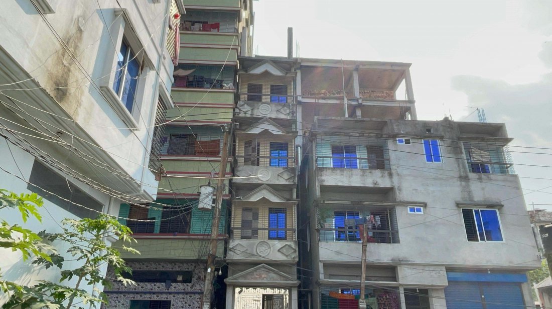 ভবনটিতে ঢুকে দেখা যায়, করিডরের তৃতীয় তলার অংশটি পাশের ছয়তলা ভবনের ওপর হেলে রয়েছে। তিন তলার বারান্দার রেলিংয়ের ইটের গাঁথুনির অংশ ফেটে গেছে। তবে করিডরের আর কোথাও কোনও স্থান ক্ষতিগ্রস্ত হয়নি। করিডর দিয়ে ঢুকে চারতলা ভবনের ভেতরেও কোনও ক্ষয়ক্ষতির চিত্র দেখা যায়নি।