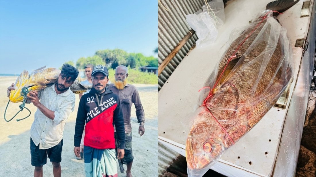 সমতট ডেস্ক: কক্সবাজারের সেন্ট মার্টিনে বঙ্গোপসাগরে পশ্চিমে জেলের জালে ধরা পড়েছে বড় ওজনের একটি পোপা মাছ। শনিবার (২২ নভেম্বর) সেন্টমার্টিন দ্বীপের পশ্চিমপাড়ার বাসিন্দা আবদুল গণির মালিকানাধীন ট্রলারে মাছটি ধরা পড়ে। ৩২ কেজি ৮০০ গ্রাম ওজনের মাছটির দাম হাঁকানো হয়েছে সাড়ে সাত লাখ টাকা।