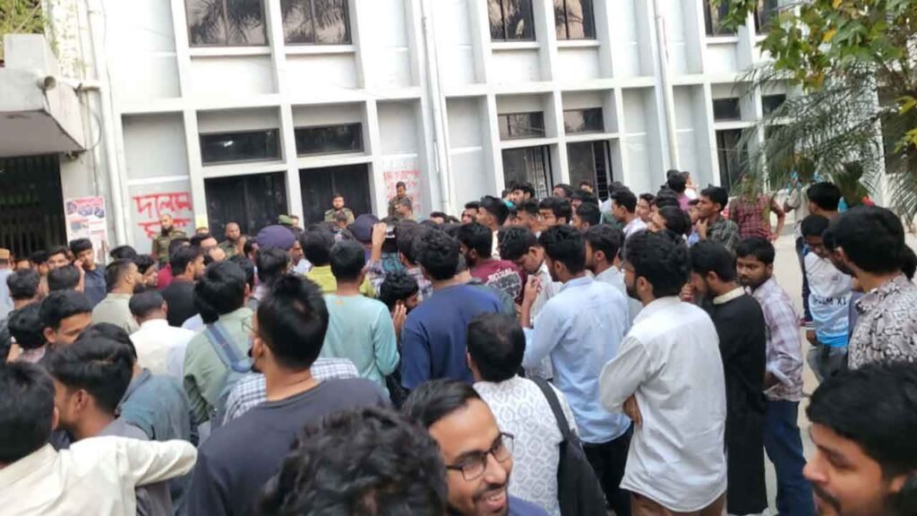 প্রত্যক্ষদর্শীরা জানান, প্রক্টর পরিবর্তনের বিরোধিতা করে ছাত্রদলের একাংশ অবস্থান নিলে অপরপক্ষের সঙ্গে তাদের বাকবিতণ্ডা শুরু হয়। এক পর্যায়ে তা সংঘর্ষে রূপ নেয়। পরে প্রশাসনিক ভবনসংলগ্ন মাঠ ও আশপাশের এলাকায় ধাওয়া-পাল্টা ধাওয়ার ঘটনা ঘটে।